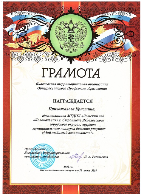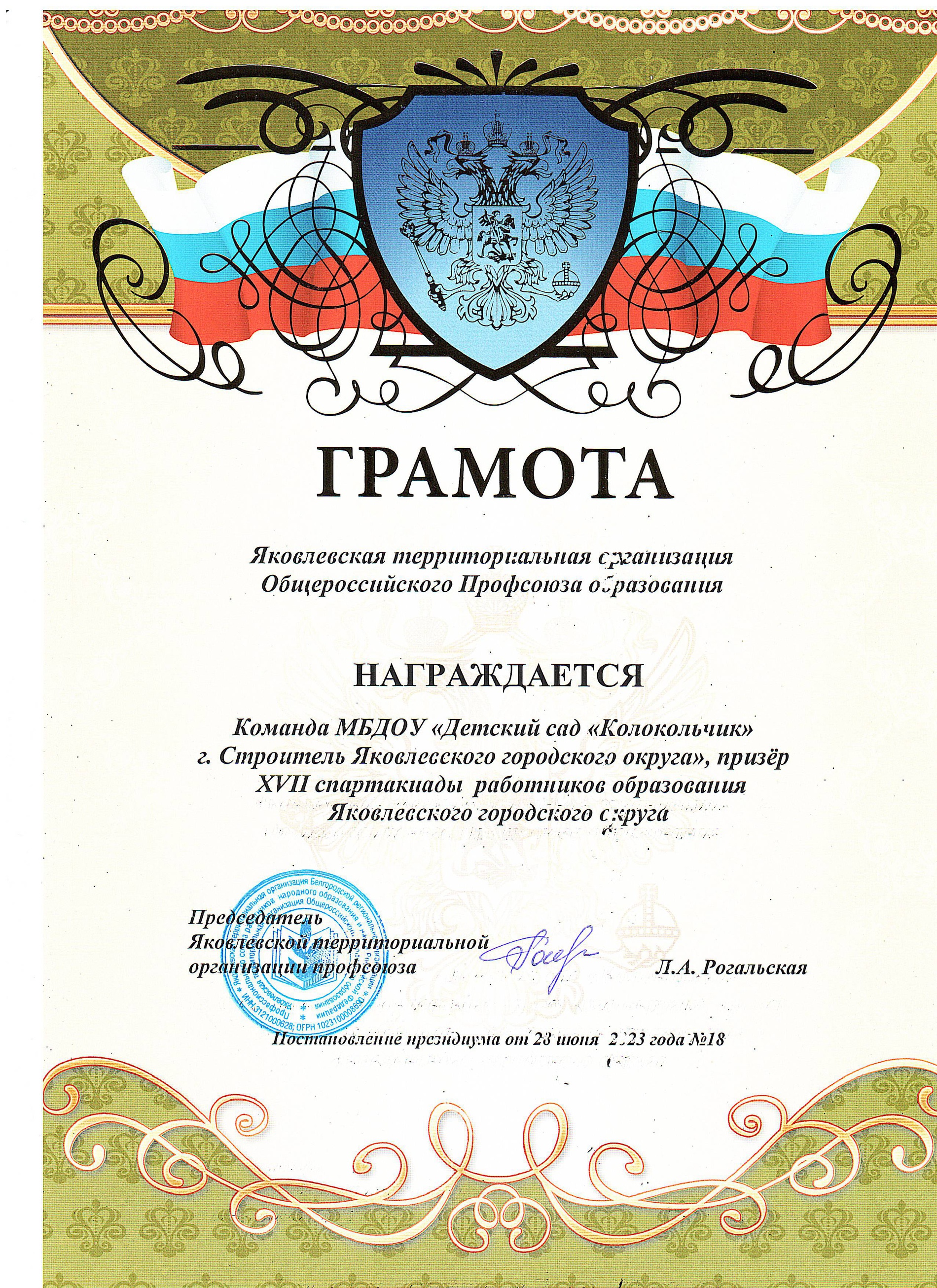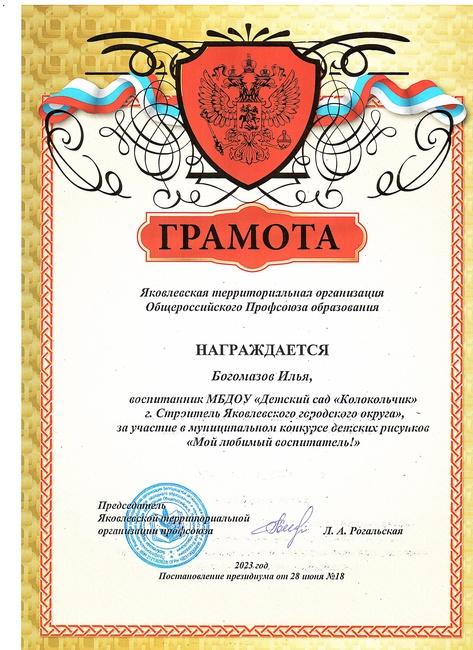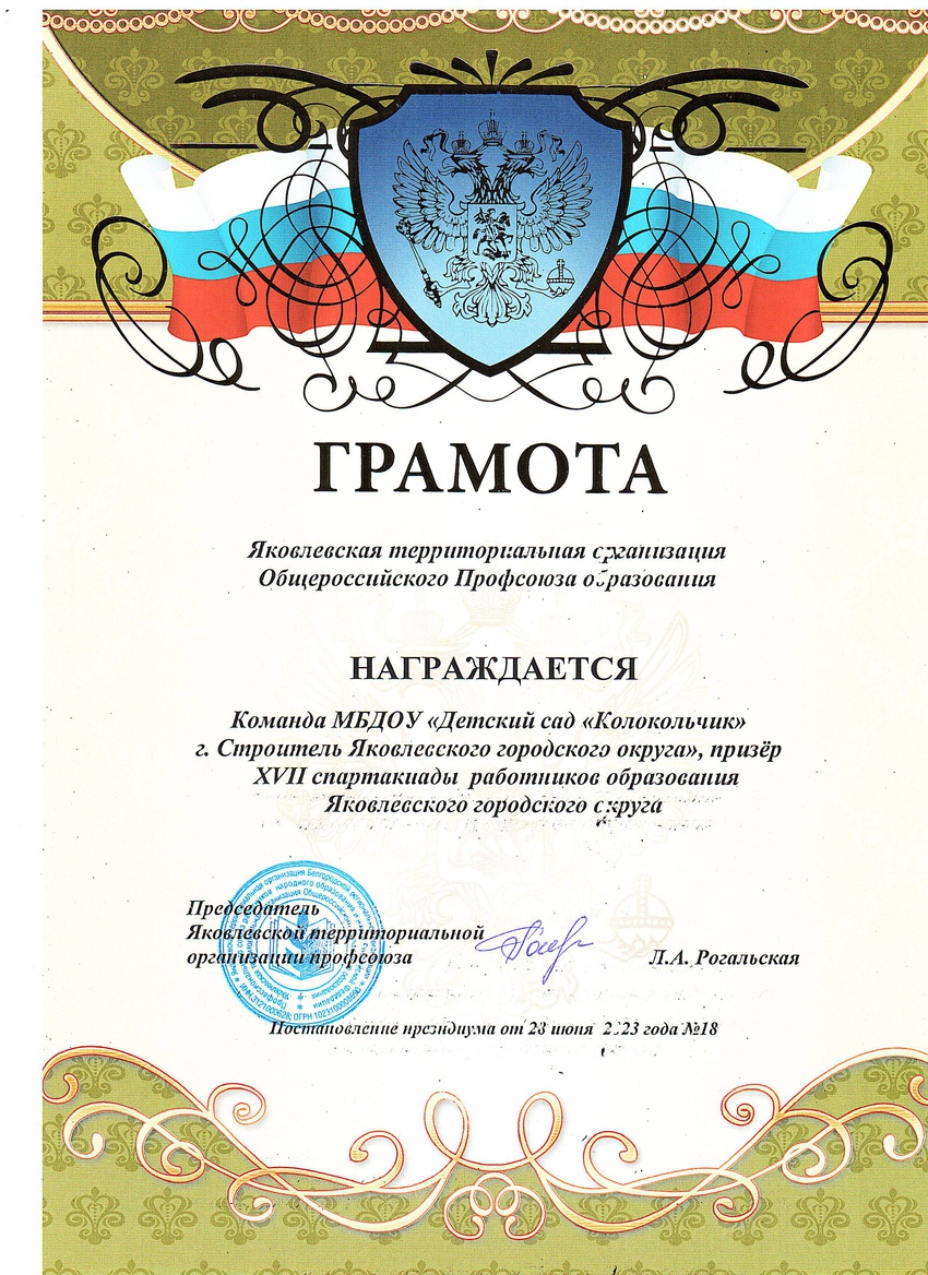 Конференция вновь единогласно избрала председателем Яковлевской территориальной организации Общероссийского Профсоюза образования Ларису Анатольевну Рогальскую. Был сформирован комитет территориальной организации, избраны делегаты на VI отчётно-выборную конференцию Белгородской региональной организации Профсоюза работников народного образования и науки Российской Федерации. Представителем в областной комитет Профсоюза делегирована Лариса Анатольевна Рогальская – председатель территориальной организации