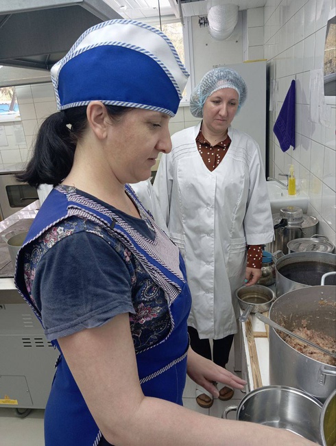 В учреждении функционирует пищеблок, расположенный на первом этаже и имеющий площадь 71,7 м2. В состав пищеблока входят: кладовая, Цех первичной обработки, овощный и горячий цех, овощехранилище. Технологическое оборудование пищеблока: жарочный шкаф, проточный водонагреватель «ЭАВАН», накопитаельный водонагреватель «SUPERLUUX», плита электрическая «ЭП — 4ЖШ» — 2 шт., жарочный шкаф — 1 шт., мясорубка стационарная — 2 шт, холодильник «NORD» — 1 шт., холодильник «MXM» — 1 шт., холодильник «Capri» — 1 шт., ларь холодильный «АТЛАНТ» — 1 шт., морозильный ларь «AUSMA» — 2 шт/, весы электронные — 2 шт., картофелечистка — 1 шт., протирочная машина – 1 шт. Расстановка технологического оборудования обеспечивает свободный подход к нему и правильную поточность производственных процессов. Вентиляция приточно-вытяжная с механическим и естественным побуждением предусмотрена в производственных цехах пищеблока. Вентустановки находятся в рабочем состоянии. Оборудование пищеблока соответствует требованиям СанПиН.