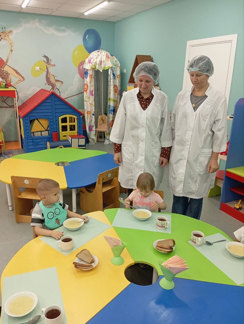 В детском саду 2 раза в год проводится контроль родительской общественности за организацией питания детей. Родители посещают медицинский кабинет, где медицинская сестра знакомит с технологическими картами приготовления блюд, десятидневным меню. Затем на пищеблоке родители знакомятся с условиями хранения продуктов, правилами приготовления пищи и раздачи по возрастным группам.