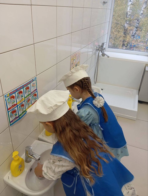 При хранении продуктов соблюдается товарное соседство. На пищеблоке обеспечено 48 часовое хранение проб, объём порций соответствует возрасту детей и требованиями СанПиН, в группах размещены графики соблюдения питьевого режима. В целях профилактики пищевых отравлений и острых кишечных заболеваний работники пищеблока строго соблюдают установленные требования к технологической обработке продуктов, правила личной гигиены. Систематически ведется подсчёт выполнения натуральных норм питания и калорийности пищи. В рацион питания регулярно включаются овощные салаты, фрукты, соки. Во время приема пищи в группах создана спокойная обстановка без шума, громких разговоров. Воспитатели следят за эстетикой питания, сервировкой стола, прививают детям культурно-гигиенические навыки. Организовано диетическое питание детей по показаниям.